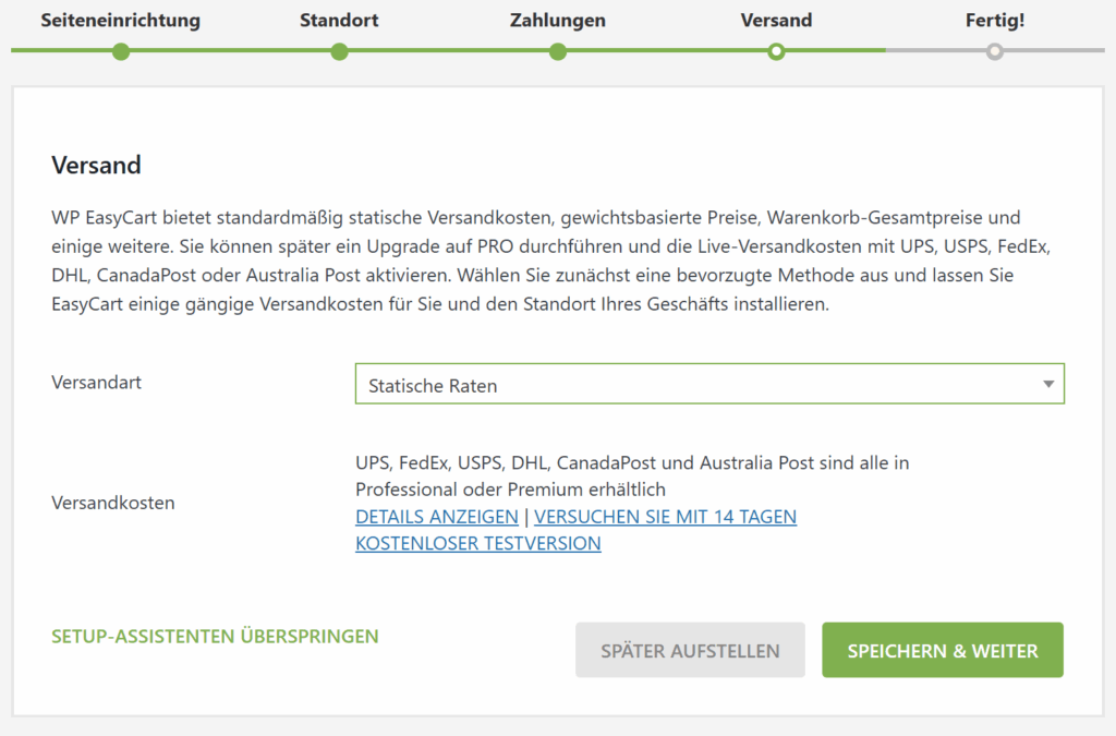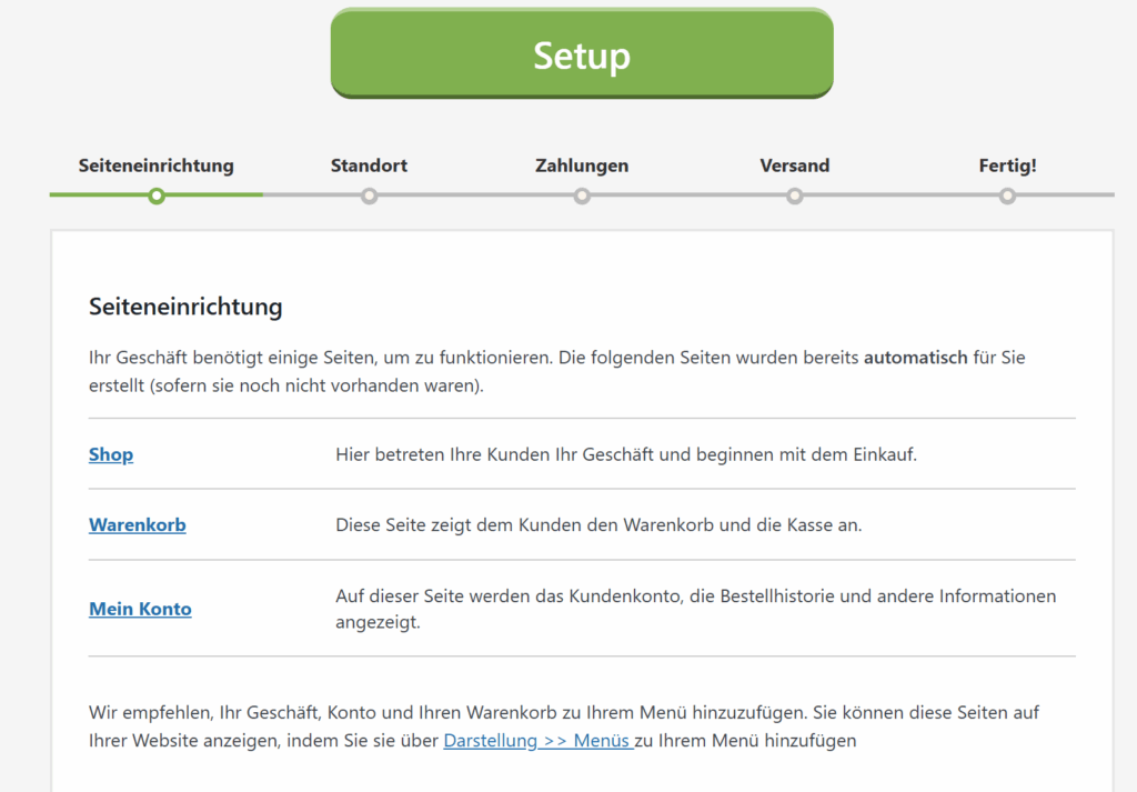 Seiteneinrichtung – Shop, Warenkorb, Account