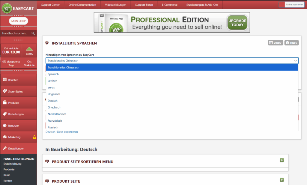• Eine umfangreiche Sprachauswahl ist vorhanden